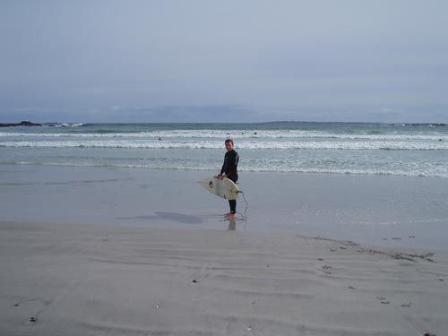So unless we were going to be branded AGNI’s for the rest of our lives we better try and hit the sea. After Nicky’s fundraising efforts at Century city (Sure she’ll blog about that soon), we drove out to Big Bay where we’d been told was quite good for learning. It’s on the Atlantic side which means it’s colder but hopefully less sharks. When we got there we were almost immediately happy with the place, the surf looked nice and mellow, it was reasonably sheltered and there were plenty of people in the water. Some of the other beaches we’d been to look pretty gnarly and not much fun for learning. So I jumped in my new suit, picked up my board and walked down to the shore. We had a check for Portuguese Man-O-War which we’d been seeing around other beaches and which can give you quite a nasty sting, but we didn’t see any. A quick dither moment and I was in.