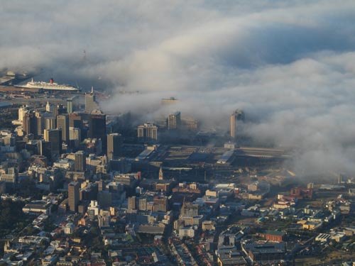 The mist rolling in from Table MountainUs, Table Mountain (hair styling courtesy of the strong winds!)