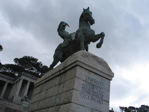 The Rhodes memorial sits on the slopes of Devils Peak and is a memorial to the legendary Cecil Rhodes of 'I'm going to name a country after me fame'. Hence the former Rhodesia.